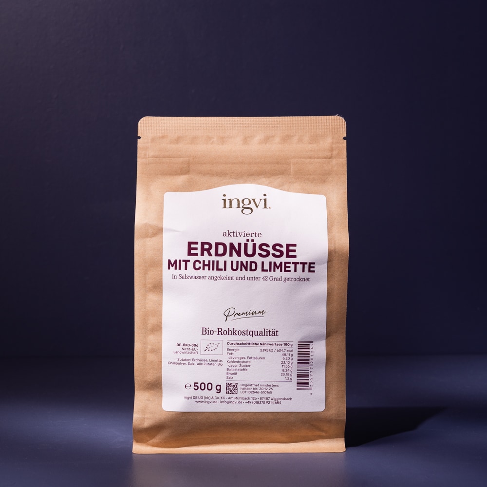 Die meisten Erdnüsse, die wir kennen, sind stark geröstet und gesalzen. Das macht sie zwar knusprig, aber auch zu einem der am stärksten säurebildenden Lebensmittel überhaupt. Diese Erdnüsse hier sind anders. Sie sind aktiviert, naturbelassen und werden nur sanft veredelt.