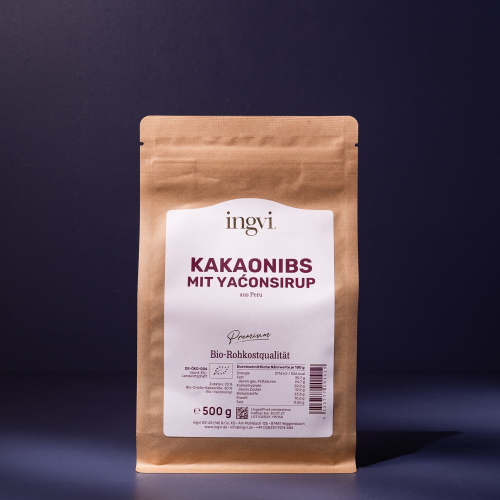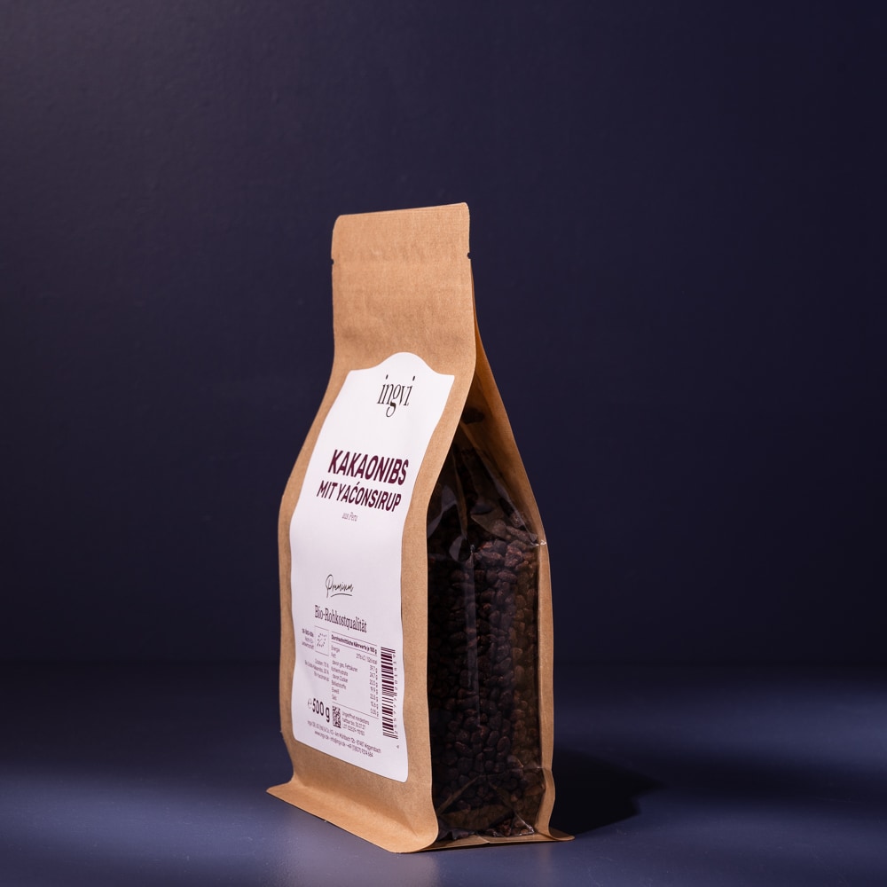 Wer Kakaonibs pur kennt, weiß: Sie sind oft recht hart und haben eine sehr dominante Bitternote. Bei dieser Variante werden die Nibs in einem speziellen Verfahren mit Yacónsirup dragiert. Das Ergebnis ist eine deutlich weichere Konsistenz und ein runder, angenehmer Geschmack, der die Herbe des Kakaos auf natürliche Weise ausgleicht.
